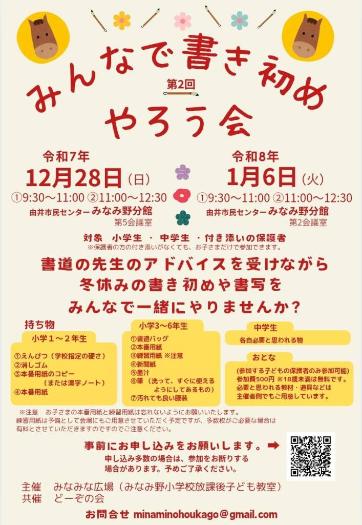 みんなで楽しく書き初め・書写に挑戦する冬休み限定イベントです。